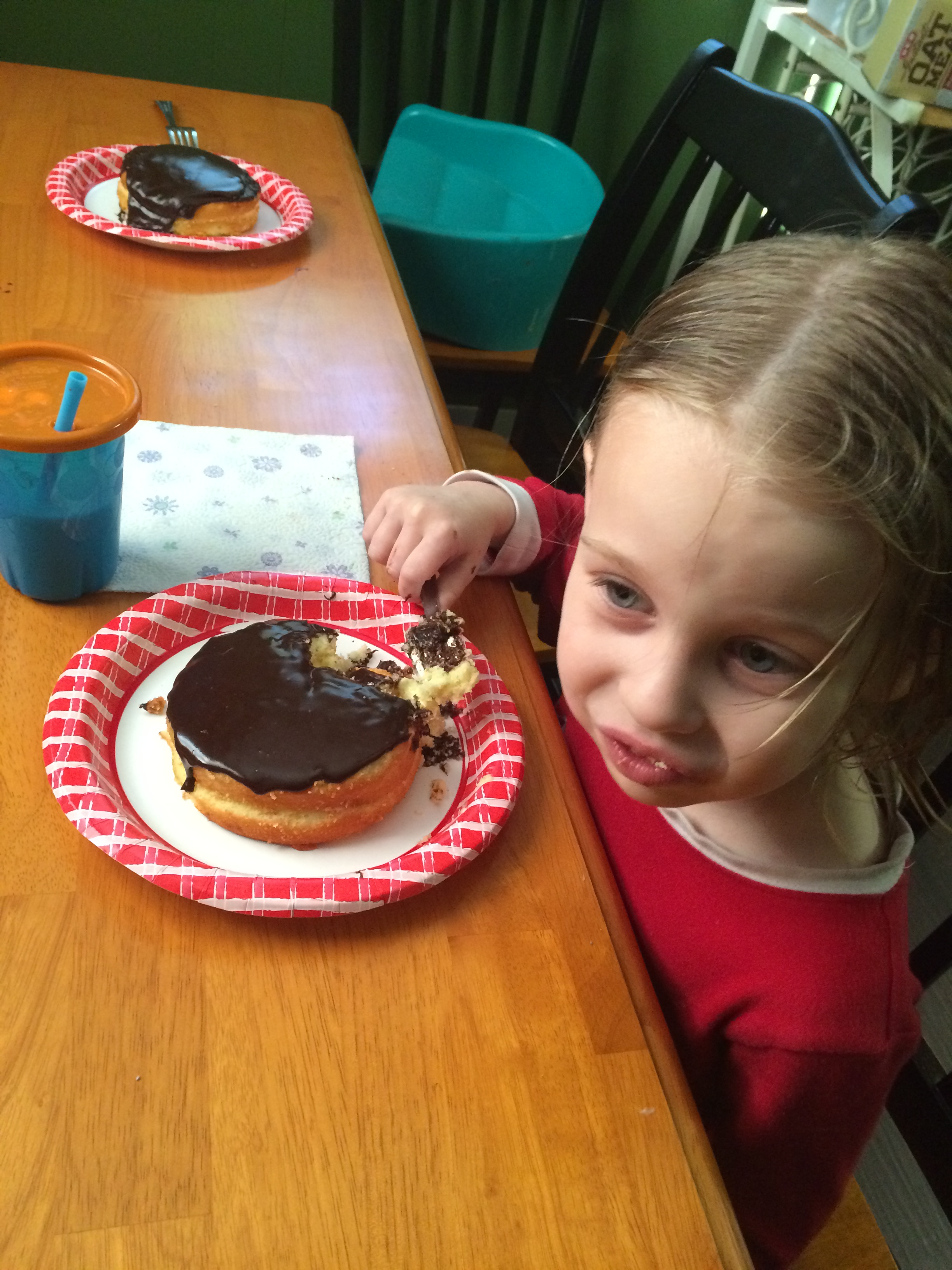 The kit came in a beautifully decorated box and had ingredients of white cake, Bavarian Cream, and Chocolate Cream pie filling. Yum! The package made 2 Éclair Cakes (1/2 cake per person) and had a ‘two-spoon’ difficulty rating out of five. Brooke had spent her day at school doing an entire day of Track and Field, so she had enough energy and hunger to eat her entire dinner and saved enough room to get about a quarter of her Éclair, and we lovingly wrapped up the rest to have for the next night. So far, this has been Brooke’s and my favorite and you can see from her smile she was really happy with the results. YUMMMMMMY.