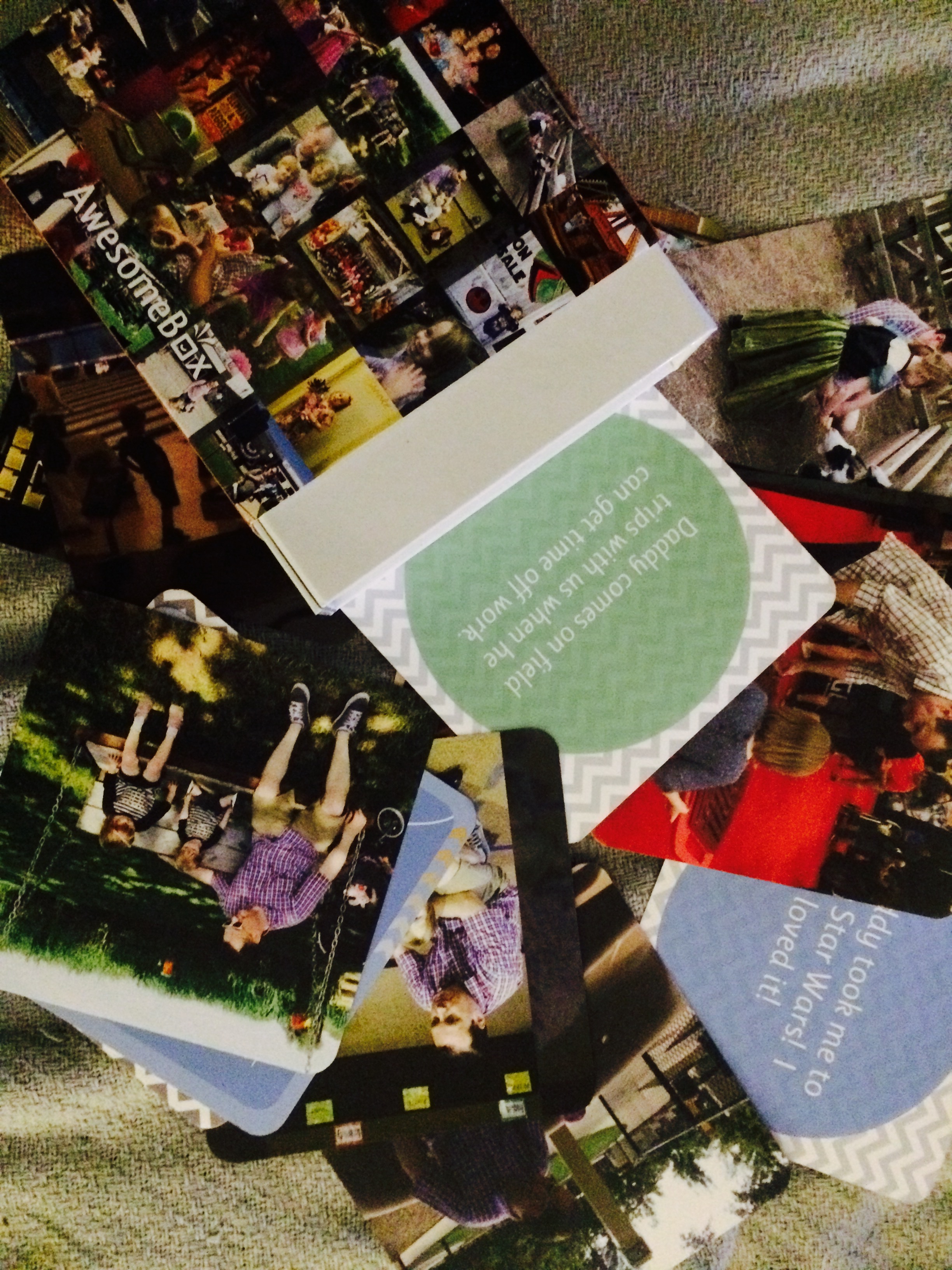 I am extremely thoughtful and sentimental when it comes to gifts for my husband. Even more so now that he is a daddy to two young girls. He is a wonderful father. By that, I mean that he didn’t just change the occasional diaper or go to the occasional event with our girls, he was, in fact, their primary caregiver as a Stay at Home Dad for four years. He did it all, and when I was home I would help him. I had no idea how hard and how fast he would fall in love with our girls and he would probably literally do ANYTHING for them. Bob isn’t always the easiest person to shop for, but when it comes to father’s day, the more sentimental and dedicated the gift is, the more it is cherished. I feel so LUCKY to have learned about AwesomeBox and what I was able to create for Bob through our year together with our girls is so special it makes me want to cry when I go through it. Like all families, we have our ups and downs, but we have always stuck together and I captured every minute of the last year through pictures and it was so wonderful to put it all together in one AWESOME memory box of cards just for dad.