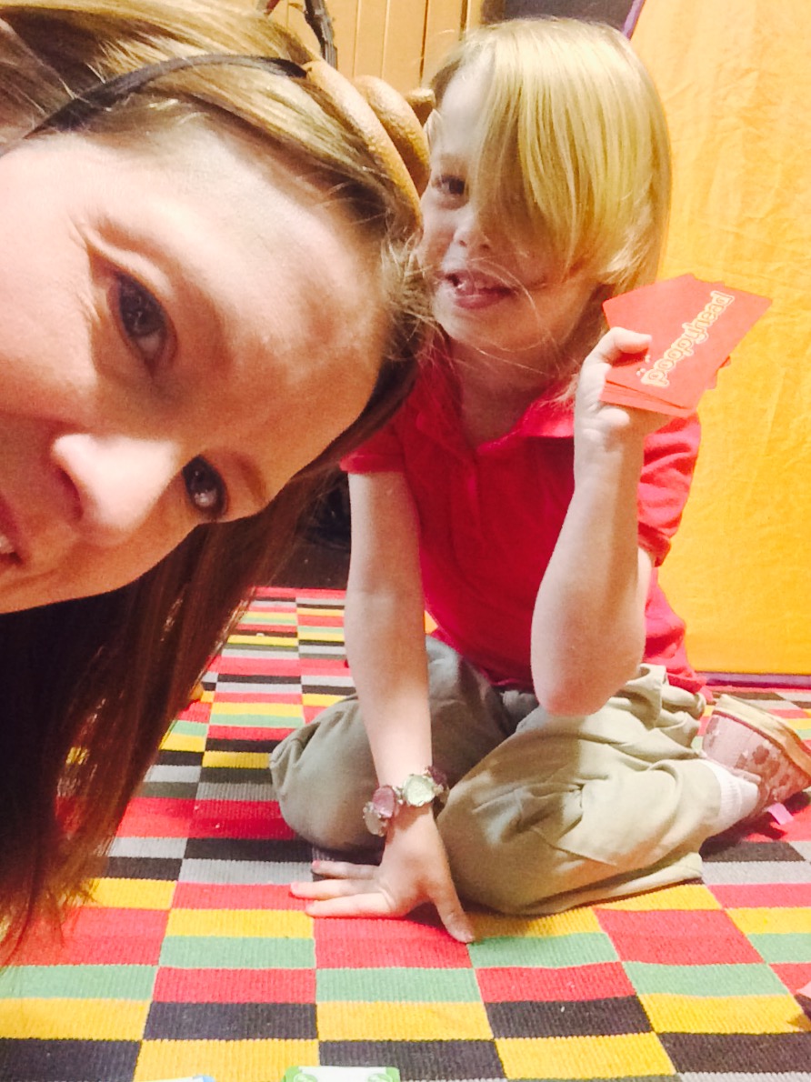 As what happens when you have little kids in your home, there is a lot of talk of toilet humor. POOP is a funny topic to my almost-six and two and a half year old. Mix that with a family-friendly game filled with fake poo, a whoopie cushion and cards that actually talk about the proper order of doing a number two had me skeptical at first, but my husband was quick to say he wanted to try out the game Poopyhead and I’m glad I listened! It has since become a family favorite game in our now growing collection.