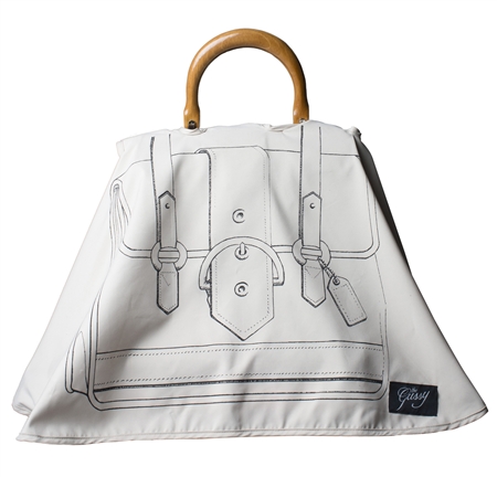 Spring and summer may rain puddles on the sidewalk and give a soaking to hair and feet but – thanks to the Gussy – when the downpours come you no longer have to worry about drenched handbags and totes! Introducing the Gussy – the purse-fect fashion accessory and seasonal must-have! The Gussy is a protective, waterproof patterned “umbrella” designed to be worn as a protective cover over a favorite handbag.