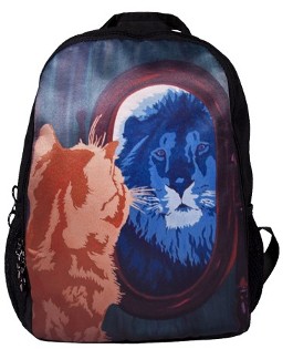 Be the coolest kitten in school with our unique backpacks. Using a classic book bag/backpack design, it features adjustable straps and a roomy interior to fit all your school supplies. Multiple zippered compartments allow for easy organization. The water-resistant microfiber allows for the images, taken from original oil paintings, to pop with amazing detail and color. I love the picture that shows Salvador looking in a mirror and instead of seeing his reflection in the mirror, Salvador sees himself as a strong and fierce lion. What a great message!