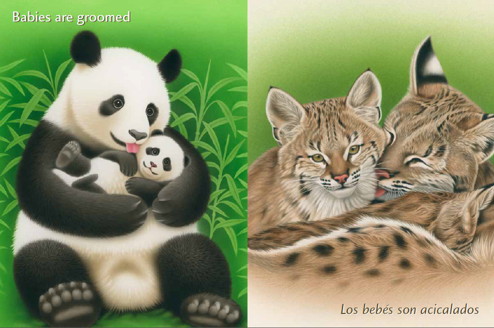 Los bebés, ya sea en cuevas de nieve, lagunas cálidas, nidos acogedores o salas de estar, son criados y acariciados. Estas bellas imágenes de familias hasta capturarán la imaginación de los lectores más jóvenes. Una joya de alfabetismo temprano. Un libro STEM para infancia temprana.Perfecto para imitar hábitos saludables, incluyendo afección, amamantamiento, y soporte. Gratis Guía de profesores disponible pronto.