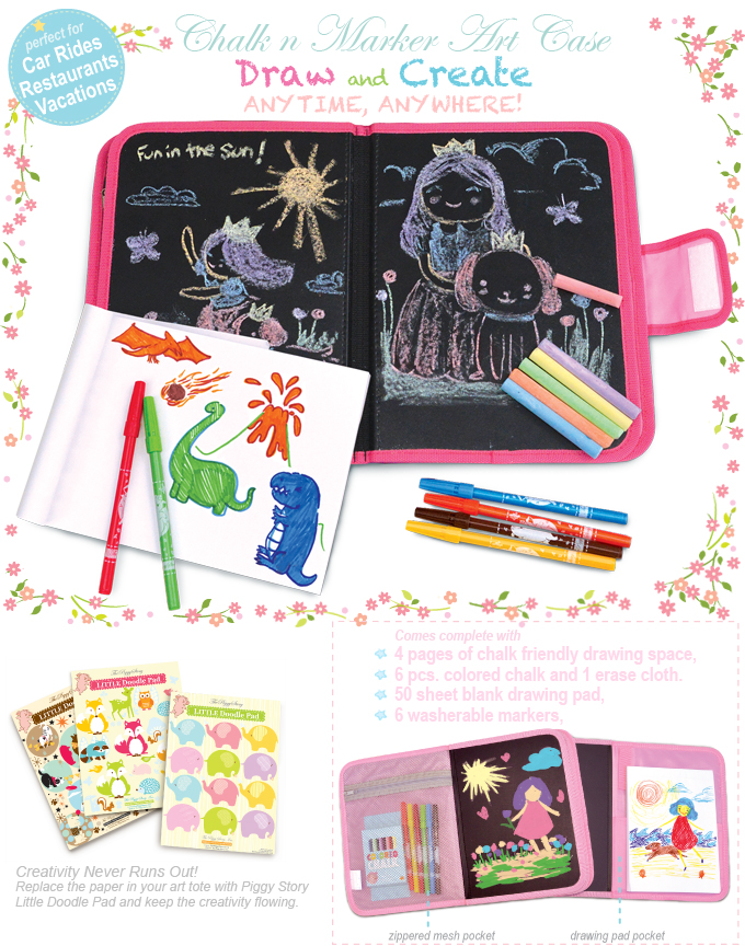 The Piggy Story Chalk n Marker Art Case comes with: