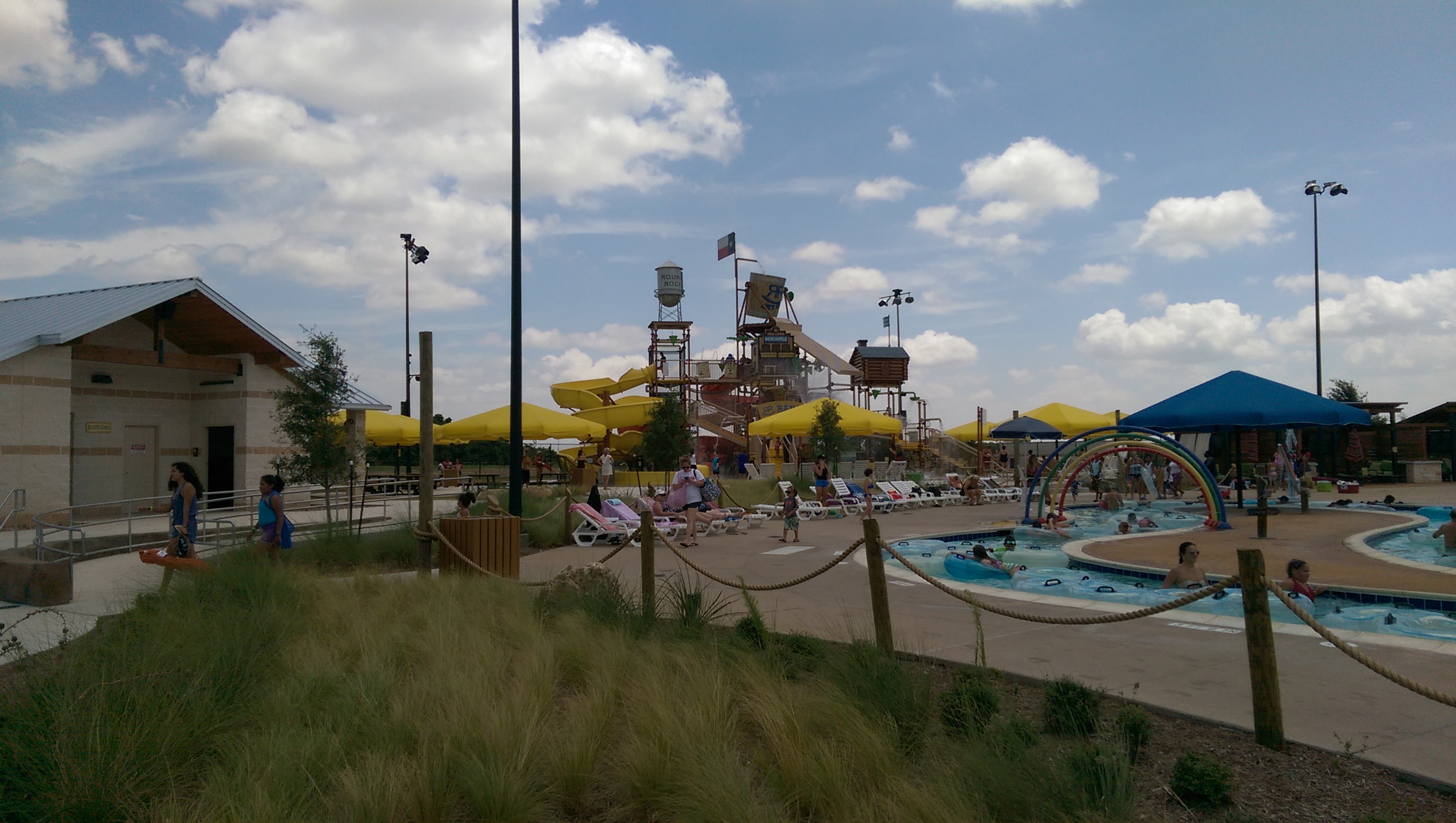 As soon as we go into the park, we needed to locate a place to put our towels and most of the cabana seating was already reserved and there wasn’t a lot of places where you could sit that were in shade unless you paid in advance. Lesson learned: if you want to get a shaded spot to sit, reserve it ahead of time at the website below! After walking around a bit, we found the concession stand (AKA the ‘General Store” where you can pay to store your valuables (purse, etc.) and we got a medium bin which was $3.00 for the day. Not too shabby. On a related note, the stand also sold swim diapers and sunscreen in case you forgot to bring your own. When we finally found an empty seat to keep our towels, the fun really began. Bob was able to snap a few pictures before we put our phones in the storage bin, and Brooke, Brie and I were already in the water!