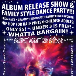 About Secret Agent 23 Skidoo: Secret Agent 12 Skidoo is a 2015 Grammy nominee that has racked up right #1 hits on Sirius/XM global satellite radio, and has received glowing reviews in TIME, USA Today, People, and on NPR’s “All Things Considered”. He tours internationally, and has rocked sets at New Delhi’s Buddy Daddy Family Bash, The Winnipeg Folk Festival, Lollapalooza, The Smithsonian and many more. He has released 5 studio albums, a live album, and 2 books, and has produced music for the US Library System Summer Reading Program’s TV commercials for 5 years, as well as serving as its NY state official spokesman for 2 years. He travels constantly, rocks shows, teaches rhyme writing workshops, produces weird funkiness, smiles often, and generally has a good time.
