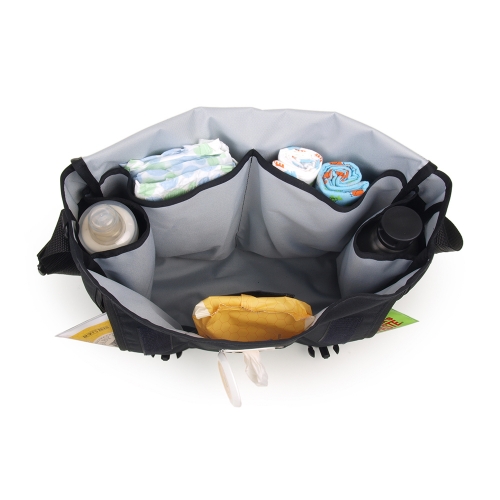 - Removable changing pad included in its own pocket to eliminate cross contamination
