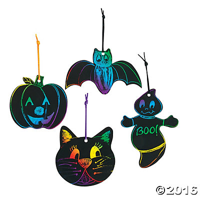 Want a magical Halloween craft than look no further than the Magic Color Scratch Halloween Shapes. Kids can create their own messages and designs with their shapes by scratching the surface to reveal beautiful colors underneath. This is a great activity for ages 5 and up and is a perfect for Halloween parties and classroom projects. Each unit comes with 24 Halloween themed shapes such as a bat, ghost or pumpkin and kids can scratch out their design and hang them up as a Halloween decoration. The kit comes with 24 shapes, 12 scratching tools and 24 satin ribbons.