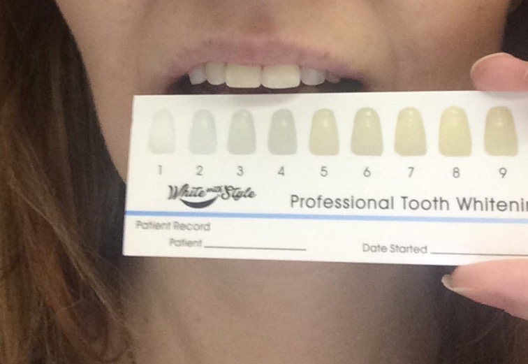Tooth Whitening Session One: I was so excited when I saw the package from White with Style in my mailbox because I’ve been looking forward to whitening my teeth. The package came with custom mouth trays that you personally mold with hot water so that the gel can be placed perfectly on your teeth, an LED light to use while whitening, and of course, the whitening gel. The instructions were simple to follow and I thought the professional tooth whitening guide was useful. As you can see from my ‘Before’ picture above, my teeth were hovering around the 3-5 range in whiteness. I was actually a little surprised because I think that my teeth are more discolored than that and I guess they weren’t as bad as I had thought! Ha. After molding the mouth trays and making sure the LED light worked, I added the gel to each tray, put them in my mouth, and put the LED light on top of the molds in my mouth to help with the whitening. Yes, that’s a lot of stuff you are holding in your mouth and it was not so comfortable holding the molds and light in my mouth for 30 minutes! YIKES! Note to self: make sure to do this when the kids are SLEEPING next time! Oops. Not only did it feel weird, it also looked weird, so make sure you have nothing going on when you do it because you basically can’t talk for a half hour each time. I reminded myself this was all in the name of whiter teeth and bit the bullet to get through the first session. Per the instructions, I had 9 more treatments to go and I could only do one per week. That’s right, this review will span a period of two months for me. Fun! After just one session, my teeth do appear whiter. It isn’t a huge drastic change, but still noticeable. I can’t wait to do this all over again next week!