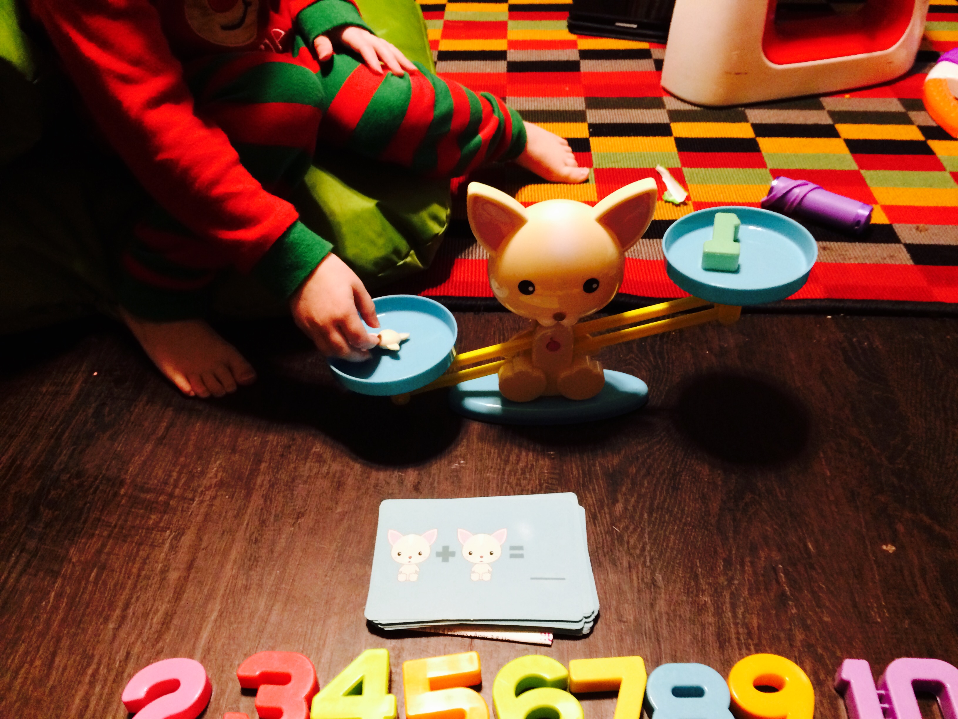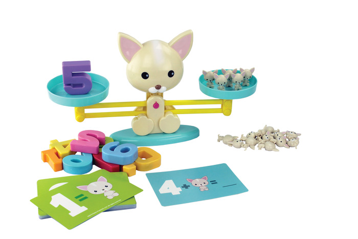Puppy Up is the new Tipsy, Topsy Numbers Game™ that includes three levels of math play for early education: number recognition, counting and addition. The game is for 1 to 4 players and each player picks a card from the deck to practice adding and counting with adorable puppy manipulates. For example, a Puppy Up card could say, “3+(picture of 1 Puppy Up)” to indicate the number 4. The child would use the card to determine the number of puppies to put on one side of the Puppy Up scale and find the weighted number 4 to include on the other side of the scale. The scale balances if the correct number of puppies matches the weighted number. You can practice the game with your child over and over again to help facilitate learning. It is a fun and entertaining way to introduce children to math and get them excited about STEM activities. Geared for Ages 3 & Up!