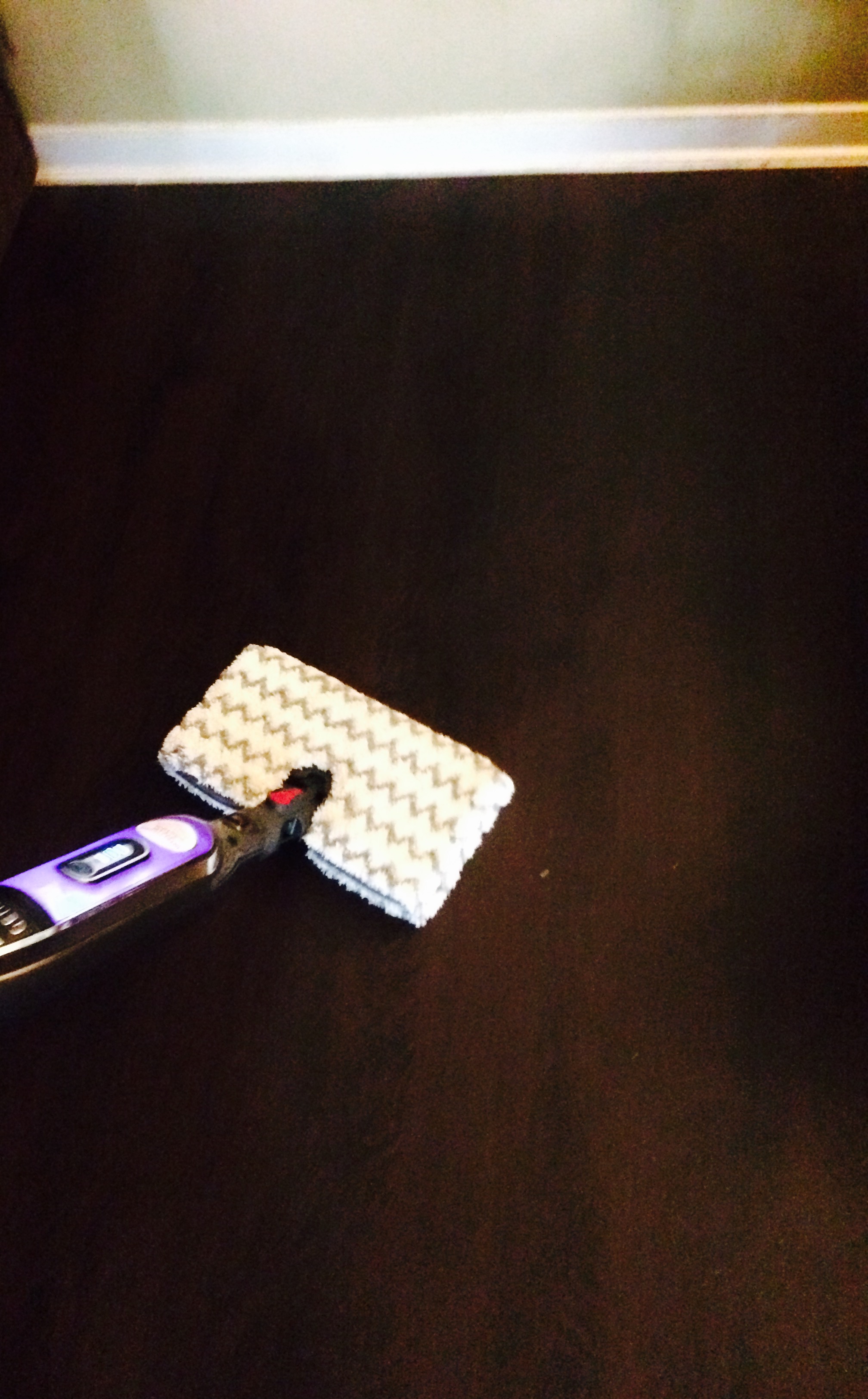 It’s been seven years since I’ve had hard-wood floors and a lot has changed since then – namely cats and kids. I think the kids may be winning in the ‘who can keep things as dirty as possible’ contest and since we’ve moved into our new home in April I’ve had a battle with our floors. Not the carpeted bedroom floors….the wood floors throughout the rest of the house. You know, the place where we LIVE when we aren’t SLEEPING. We have a great backyard with a sliding door which means the girls can track in mud, dirt and, sticks (because we all know three year olds can forget to take off their shoes every time they enter the house) at least once a weekend. I’ve tried several mops and my latest one (that rhymes with Biffer) made me want to actually break it in half. Who are these people on the commercials saying their mops made their lives like a living paradise?!? Maybe my family is just that messy and hopeless! Well, I’m here to now tell you, it’s probably not you, it is probably because you are using the WRONG hard floor cleaning system for your floors and since I started using the Shark® Genius™ Steam Pocket® Mop System my floors not only LOOK cleaner, they are easier to clean.