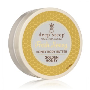 The organic honey and organic Shea butter in Deep Steep’s Golden Honey Body Butter absorbs easily into the skin, delivering delicious moisture and works with other natural oils and extracts to leave your skin buzzing with vitality. Honey’s anti-oxidant and anti-microbial properties help to protect the skin, and supports the skin’s ability to rejuvenate and refresh depleted skin, leaving it soft and supple.