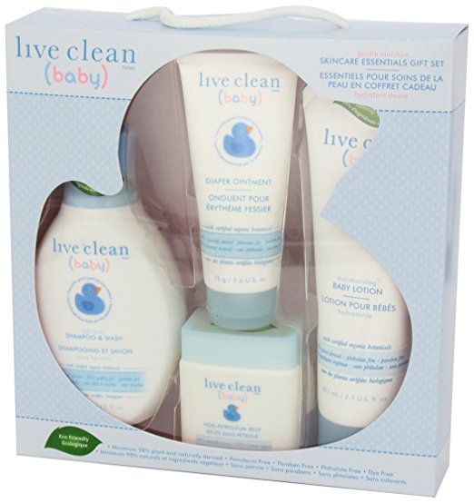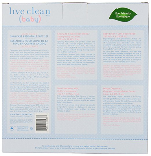 Give the gift of Live Clean® Baby for any occasion! An adorable full size gift set contains all the baby essentials: Live Clean® Baby Shampoo and Wash, Baby Lotion, Non-Petroleum Jelly, and Diaper Ointment.