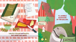 “Koalas aren’t called Eucalyptus-eaters. Pandas aren’t called Bamboo-eaters. Jaguars eat Anteaters, but they aren’t called Anteater-eaters!” insists a voracious young Anteater who will gobble up just about every food except for one: ants! This clever take on the picky-eater is full of wry humor and silly puns as the anteater takes us through the food he LOVES to eat, all while repeating the refrain, “but I don’t eat ants.” That is until dinnertime when his mom presents him with with a “fiery” surprise. The final punchline playfully depicts the often illogical rationalizations of young picky eaters in a way that will have kids and their parents laughing.