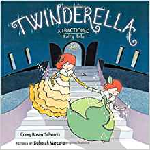 Twinderlla is a story of double the fun for storytime or math lessons in fractions. Yes, seriously! As Kirkus Review explains, “Breezy, pun-filled rhymes introduce Cinderella’s twin, Tinderella, who uses math to divide their wicked stepmother’s chore list in half. The fraction theme continues as the girls divide and conquer tending to the mean stepsisters, splitting meager meals, and sharing a bed. And when Prince Charming announces a ball to find himself a bride and their fairy godmother comes to their rescue, the twins know how to divide the trinkets and coach in half. Vibrant, digitally enhanced illustrations rendered in ink, gouache, and watercolor capture all the merriment until, just as in the original tale, one smitten prince is left with one shoe. Since a prince can’t be divided, Tinderella, ever the mathematician, asks the fairy godmother to double him. A fitting ending explains how Cinderella and her prince became famous and wound up on the throne while Tinderella and her prince won the kingdom’s math awards and kept fractions flourishing with baby quadruplets.”