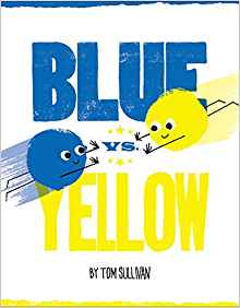 Here I thought all primary colors were friends, but that is not the case in the new Tom Sullivan book, Blue vs. Yellow. Ladies and gentlemen, boys and girls, welcome to the Clash of the Colors! BLUE VS. YELLOW!
