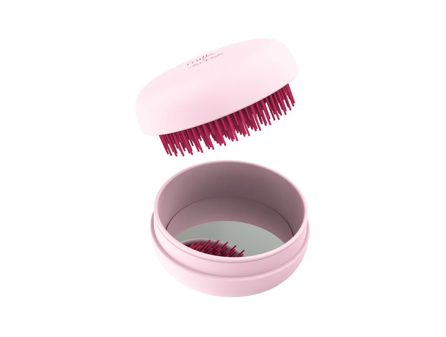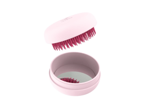 Say “Bonjour” to the bite-sized detangling brush making a massive impact!The Macaron for Hair® is a sweet and petite Parisian-inspired detangling brush that smooths tangles in half the time of conventional brushes. The pop-on/pop-off cover works double time as a bristle protector and compact mirror—perfect for travel and on-the-go styling! Strategically sturdy radial bristles are combined with a lightweight ergonomic design for optimum comfort, control, and tangle taming for every hair age, type, and texture.
