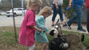 Our family loves going to the ZACH and it was a huge surprise that there was a petting zoo outside the theater today! The kiddos were so excited! Brie was already decked out in her kitty clothes for the animal-inspired ‘Goodnight Moon’ book for the occasion, so she made a beeline to meet the various critters before the show. It was a nice and unexpected touch for the little ones who were waiting to see the musical.