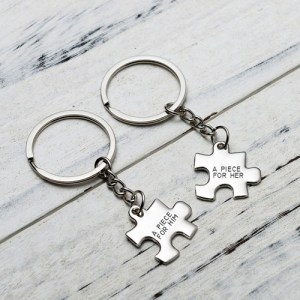 My husband and I will be celebrating our 15 year anniversary in October! WOW. I’ve been picking a few things over the last few months to prep to celebrate this milestone, and I LOVE the custom key chain by Personalized Gifts. The set comes with two stainless steel puzzle pieces (1″ x 1 1/2″) that can be custom engraved at checkout. The two lightweight 22 gauge mirror finished. Love!