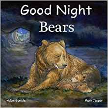 Good Night Bears highlights black bears, polar bears, grizzly bears, panda bears, sloth bears, sun bears, spectacled bears, bear cubs, bear habitats, bear tracks, catching salmon, and more.