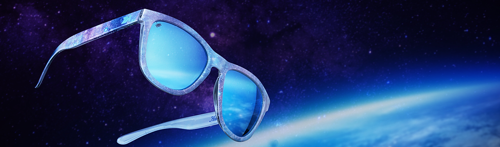 The Galaxy Premiums feature a supernova design by 4th grader Amaya from Fulton Elementary. The starry, galactic print of interstellar blues and lavenders are complemented by polarized sky-blue lenses and a spiral galaxy lens etch.