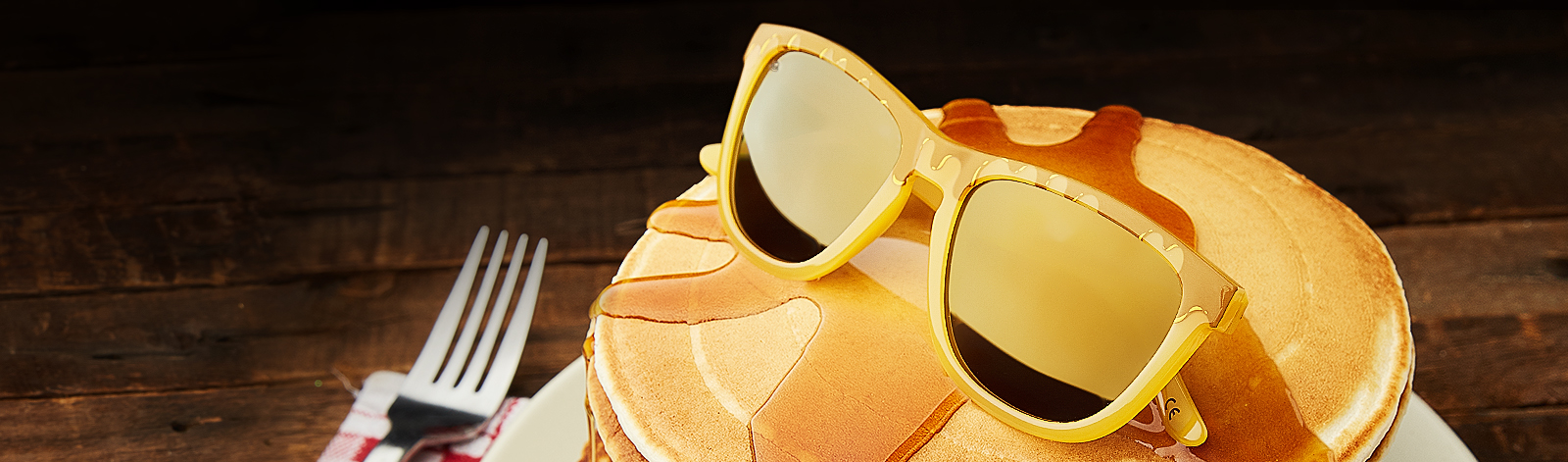 5th grader Danielle from Perry Elementary was inspired by her all-time favorite breakfast of pancakes when she designed the Mr. Butter Premiums. The frames are translucent golden honey-colored, drizzled with oozy maple brown graphics. Gold metal “K logos” and polarized gold lenses are set off by a “double stack” lens etch.