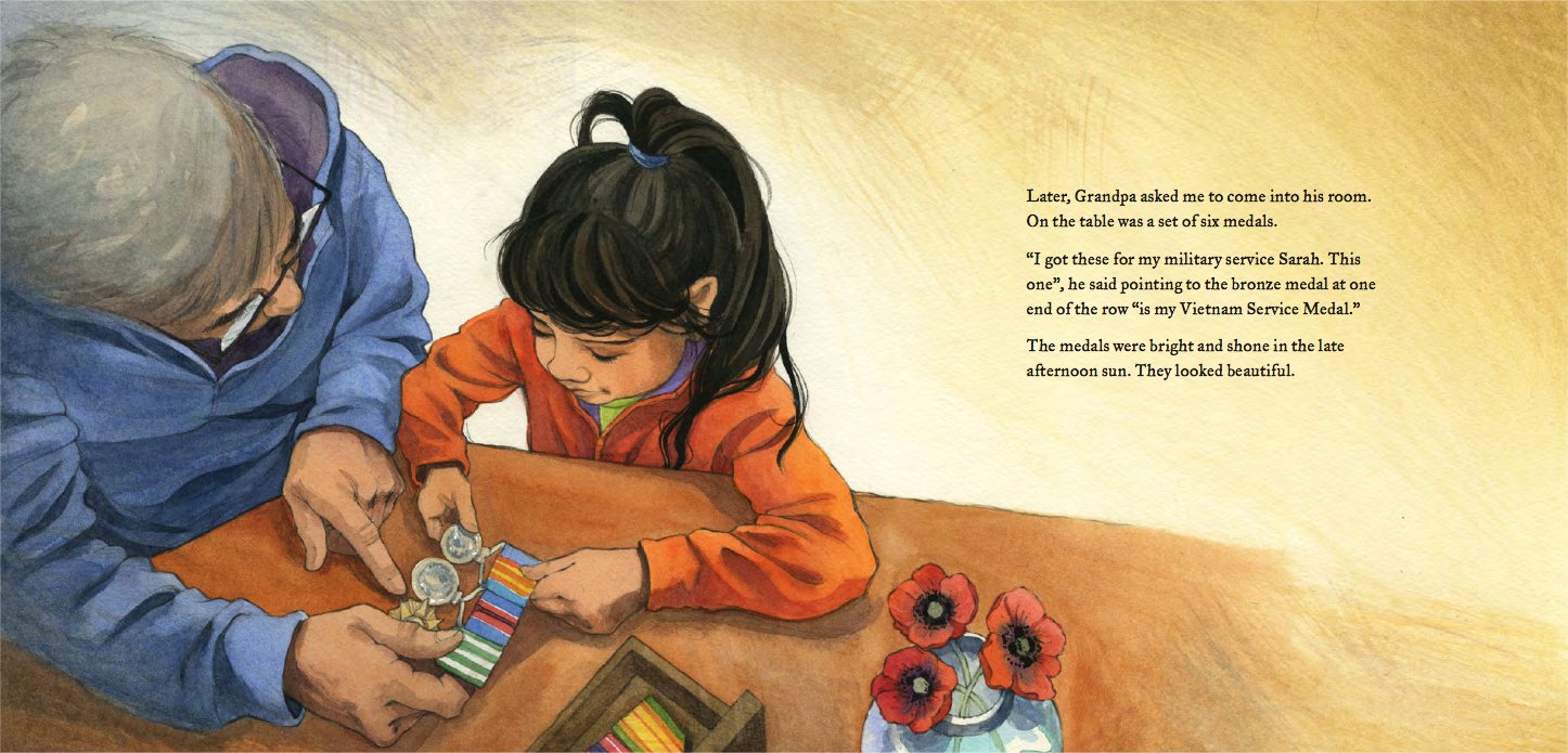 The award-winning team of Glyn Harper and Jenny Cooper share this poignant story about a Vietnam veteran and his relationship with his granddaughter. While the relationship is a positive one, the young girl senses her grandfather’s pain and is curious to find out the cause of it. As she innocently seeks answers, she unknowingly opens old wounds and discovers her grandfather’s sadness is a legacy of the Vietnam War and his experiences there.