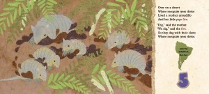 Deserts are full of surprises! An amazing array of animals calls this driest place on Earth their home. Through rhythm and rhyme, children meet a new animal on every page. They won’t be able to resist getting in on all the action as animal parents teach their babies how to live in this unusual place – camels kneel, armadillos dig, dingoes sniff, and jerboas jump. Cut paper collages capture the subtle beauty of the desert and also “hide” more animals for young eyes to find.
