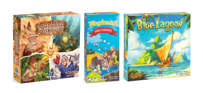 Scarabya, Kingdomino Expansion Age of Giants, and Blue Lagoon!