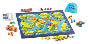 Blue Lagoon, designed by Reiner Knizia, requires smart placement and anticipation to win. The area control and set collection game is won through the accumulation of points by collecting resources and settling on the islands.