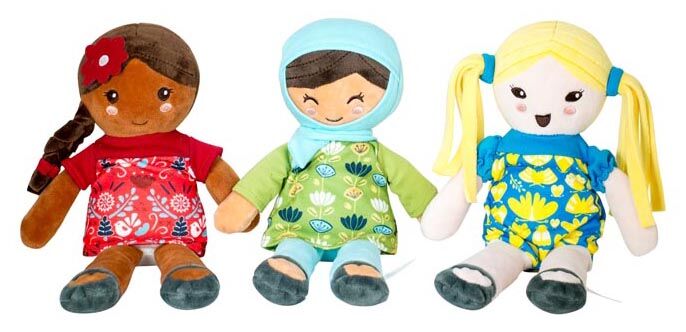 Recognizing a gap in the marketplace, they decided to start their own company (while keeping their day jobs!) with the mission of teaching children to love, appreciate and embrace differences. They worked quickly, hiring plush industrial designers to create a prototype and working through several iterations to perfect color, texture, size and safety specifications. Measuring 12.8 inches tall, the soft dolls are perfectly sized for little hands to grasp and hug yet sturdy enough to sit upright.Annie, Lola and Ameena’s clothing incorporates the olive branch that is a universal symbol of peace and part of the Selma’s Dolls logo. Selma’s Dolls are lightweight and made with a variety of soft and snuggly materials like Jersey Knit fabric. Best of all, each doll can be spot cleaned.
