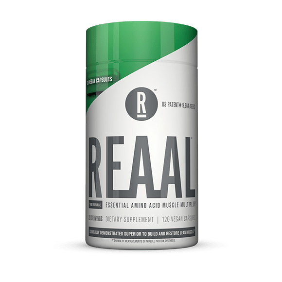 REAAL is a patented EAA (Essential Amino Acid) technology based on 40 years of research and 24 clinical trials conducted on amino acids. REAAL includes compositions and ratios of the nine essential amino acids discovered to be most effective at facilitating muscle growth and restoration.